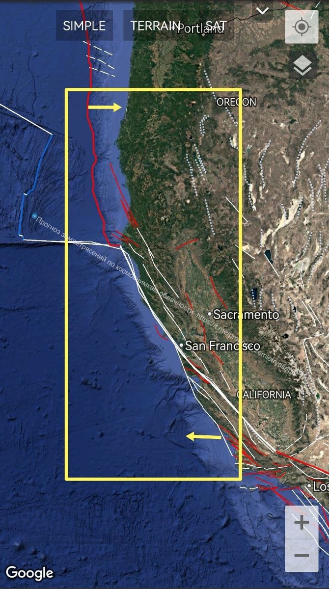 Похоже на провал в облачности по границе рифтовой зоны в Тихом океане. Хотя и береговой эффект не исключен полностью.
