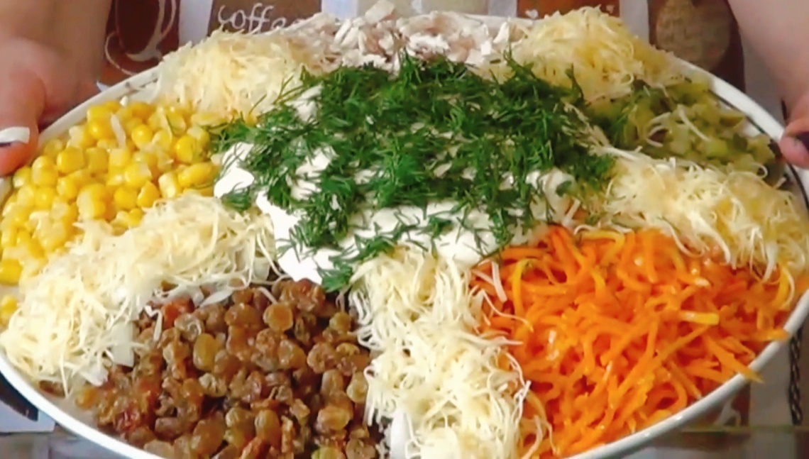 Очень вкусный и праздничный салат Ералаш. Обязательно попробуйте!