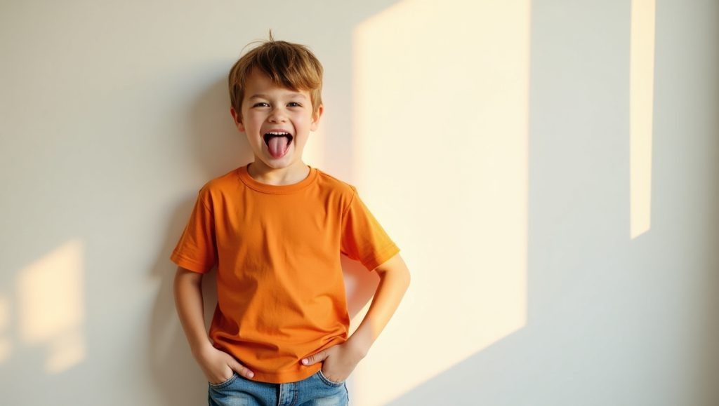 - «Дразнилка». Кончик языка высовывается наружу и двигается между губами сначала по вертикали, а затем по горизонтали, при этом чувствуется напряжение в уздечке языка. При включении голоса получается звук, похожий на детское «поддразнивание».