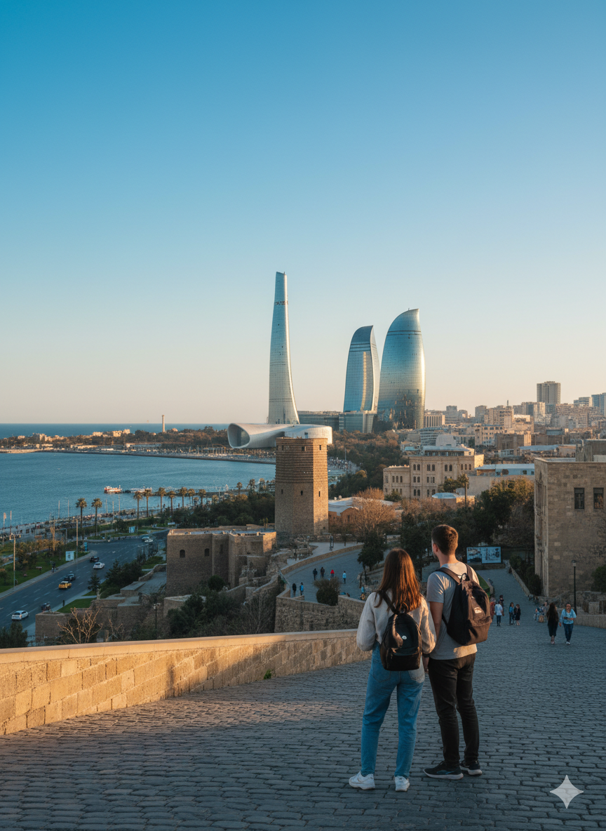 - Как добраться: станция метро «Ичери-Шехер» или «Сахиль», 5–10 минут пешком до набережной.