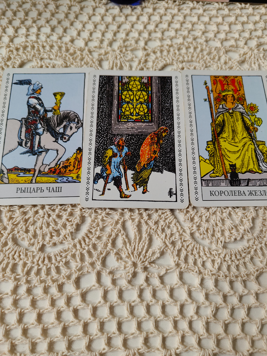 Рыцарь Кубков — это порыв. Это желание появиться, написать, сделать шаг. Он хотел это сделать. У него внутри даже родилась эта мысль: «Надо ей написать. Надо позвонить. Надо увидеть».