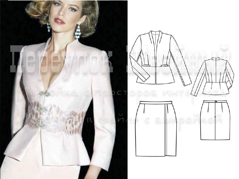 Выкройка женского костюма (жакет и мини-юбка) евро 36-44
