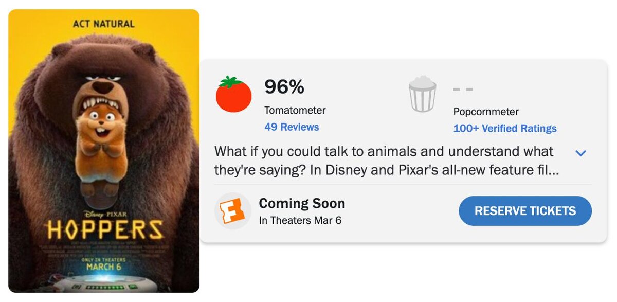 «Хопперы» от Pixar дебютировали с рейтингом 96% на Rotten Tomatoes