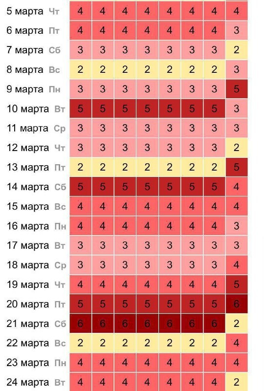 Геомагнитная активность снизится только 8, 13 и 22 марта. Специалисты рекомендуют следить за состоянием здоровья в эти дни, особенно людям с повышенной чувствительностью к изменениям погоды.