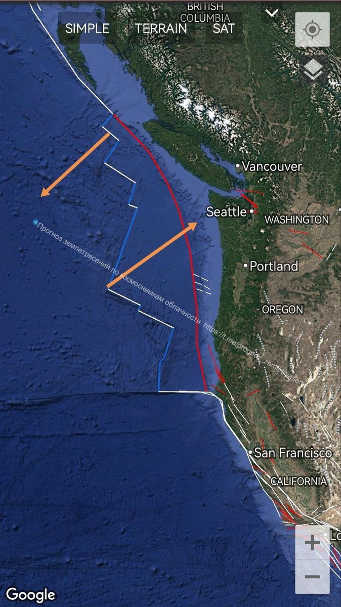 ⚠️На плите Хуана де Фука напряжение ушло на север - в район острова Ванкувер