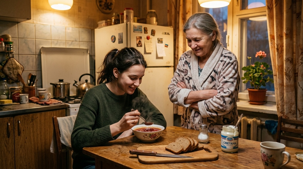 Она ела жадно, обжигаясь, не поднимая ложку до конца - суп стекал обратно в тарелку. Я стояла у плиты и чувствовала, как в груди разливается что-то тёплое и давно забытое.