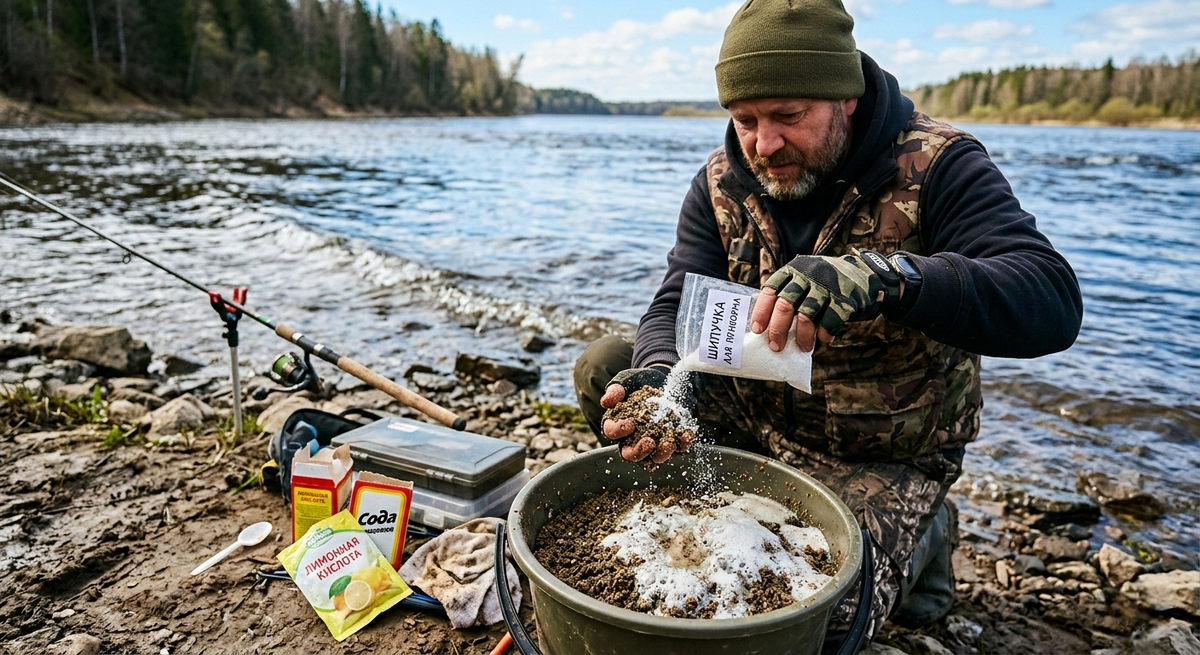 Не переборщите: Слишком бурная реакция может напугать крупную рыбу. На 1 кг прикормки достаточно 100–150 г сухой «шипучки».