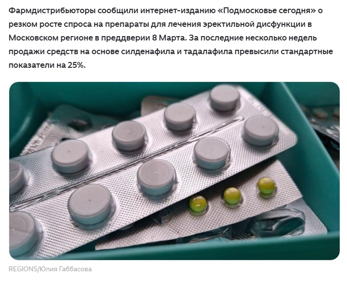Что подарит мужчина на 8 марта? Продажи препаратов для потенции выросли на 25 % в преддверии 8 марта