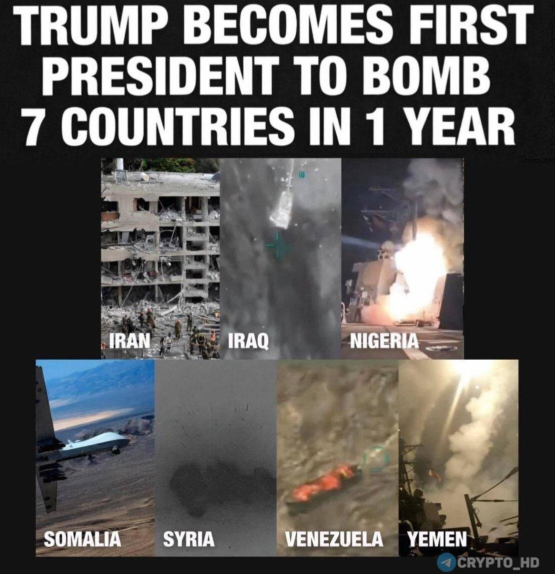🤔 Axios: Дональд Трамп стал первым президентом CША, который за 1 год начал бомбардировки семи стран.