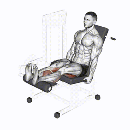 - Сидя — человек садится на кресло, прижимает колени одним валиком и располагает прямые ноги на другом, затем, придерживаясь за рукоятки, сгибает ноги, преодолевая сопротивление тренажёра.