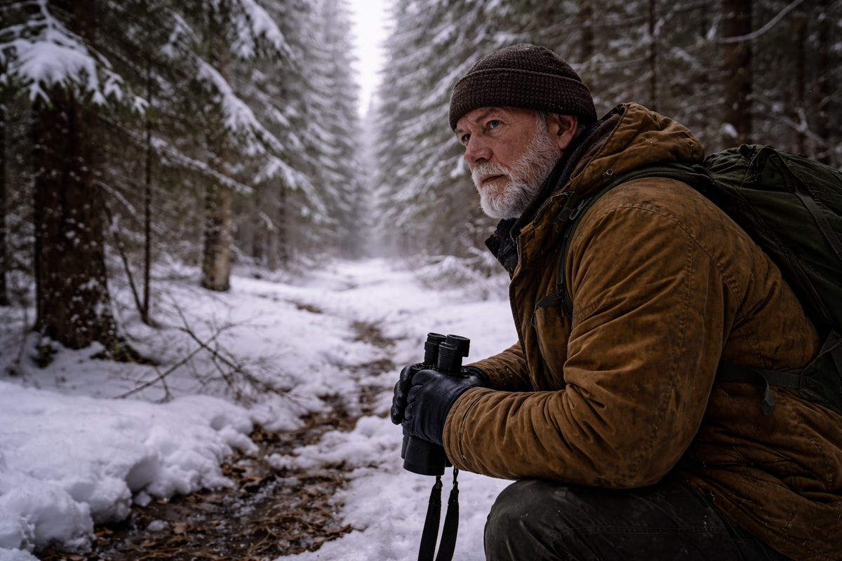 Тот день был обычным. Небо чистое, мороз около двадцати, наст держит. Я возвращался с дальнего обхода, шёл спокойно, без спешки. Лес был почти неподвижен — ни ветра, ни осыпающегося снега.
