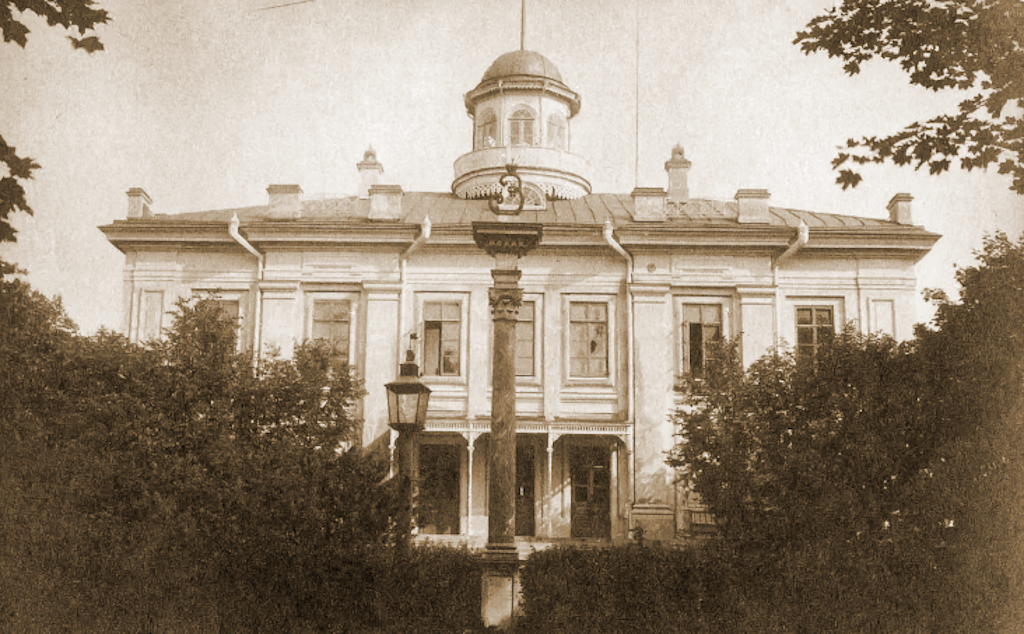 Сначала дом был деревянным, в стиле раннего классицизма: простые, строгие линии, без лишних украшений, но при этом все выглядело очень аккуратно и продуманно. Крыша была с бельведером - своеобразной верхней площадкой, откуда можно было обозревать округу. По бокам располагались флигели, образуя парадный двор. Для гостя это выглядело впечатляюще: широкая подъездная аллея, открывающееся пространство, симметрия строений.