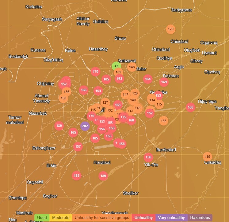 Yomg‘irga qaramay Toshkentda havo sifati yaxshilanmadi “O‘zgidromet”ning izoh berishicha, yomg‘irdan so‘ng mayda dispers zarrachalar konsentratsiyasining qayta oshishi ehtimoli bor. Ifloslantiruvchi moddalarning atmosferada ushlanib qolishiga shamol yo‘qligi ham sabab bo‘ladi. @daryolive