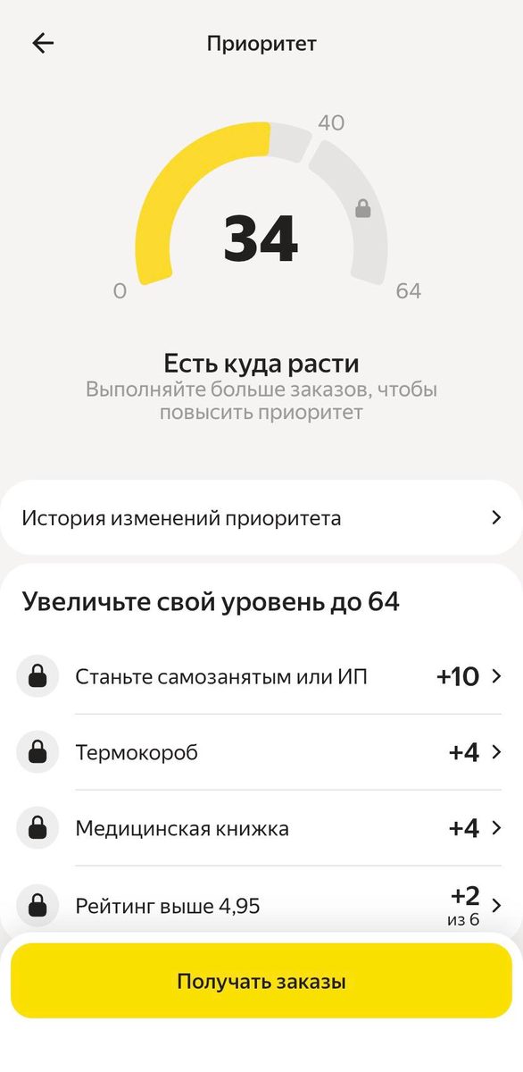 Уже в первый день я напропускал и на отменял столько заказов, что приоритет опустился до нуля и приложение меня заблокировало на время, пришлось идти домой и ждать пока блокировка спадет