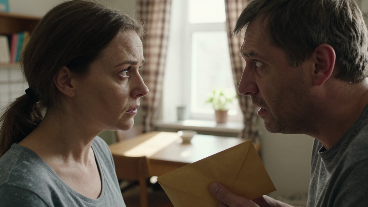 Сергей стоял у маминого письменного стола. В руках — плотный конверт. Он увидел её и не двинулся с места. Просто смотрел.