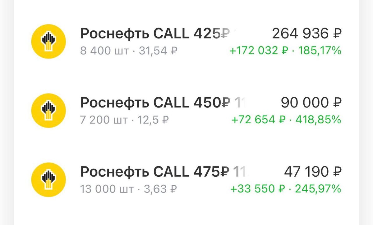 Пример отработки вчерашнего плана. Х3 за день на опционах на акции Роснефти. Боюсь, что это только начало…