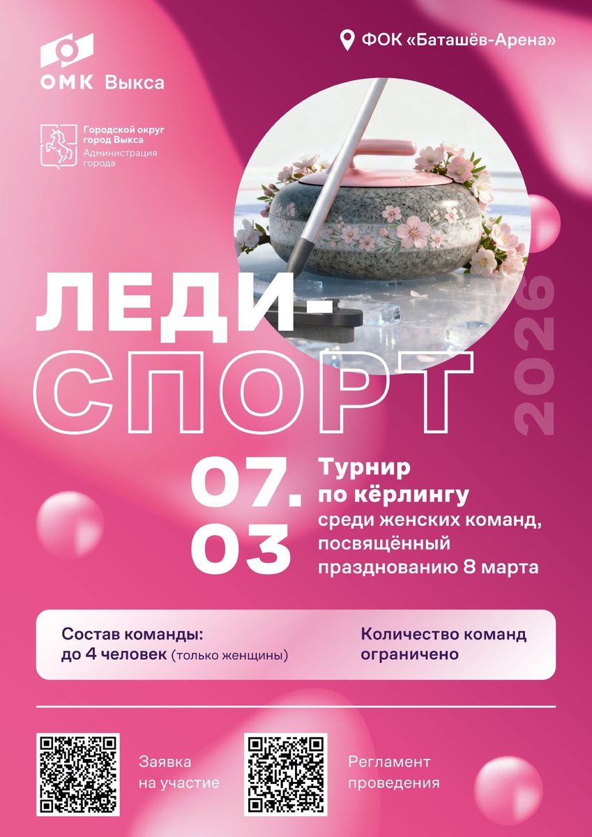🥌 7 марта в ФОК «Баташёв-Арена» пройдет турнир по кёрлингу среди женских команд, посвящённый празднованию 8 марта.