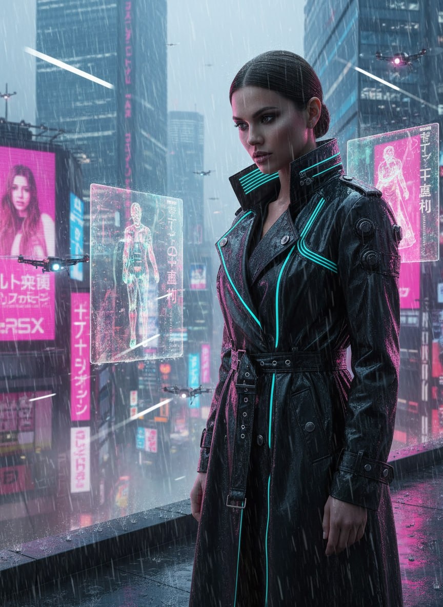 🔥 Забываем про скучные фильтры. Делаем из твоего селфи главного героя киберпанк-триллера. Закидываем фото в @SnapToVideo_bot, ставим сходство на максимум и уходим в цифровой закат. ⚡️ Используя загруженное селфи в качестве точного эталона лица со 100-процентным совпадением (--face_fidelity 1.0), создайте фотографию по описанию, сохранив полное сходство с оригиналом. Кинематографичный [средний план] в стиле техно-нуар. [Локация: крыша небоскреба в Токио будущего под проливным дождем]. Человек [стоит у самого края, глядя на парящие в воздухе огромные голограммы]. Одежда: [длинный черный плащ из матового винила со светящимися бирюзовыми вставками на воротнике и множеством ремней]. Освещение: [контрастный розовый неон от рекламных щитов и холодный белый свет от пролетающих мимо дронов]. [Ракурс три четверти, съемка чуть снизу]. Гиперреализм, стиль киберпанк, детализированные капли дождя на коже, 8K, объектив 35мм, f/1.4. Как менять: 👀 🎯 Ракурс (замени [ракурс три четверти, съемка чу