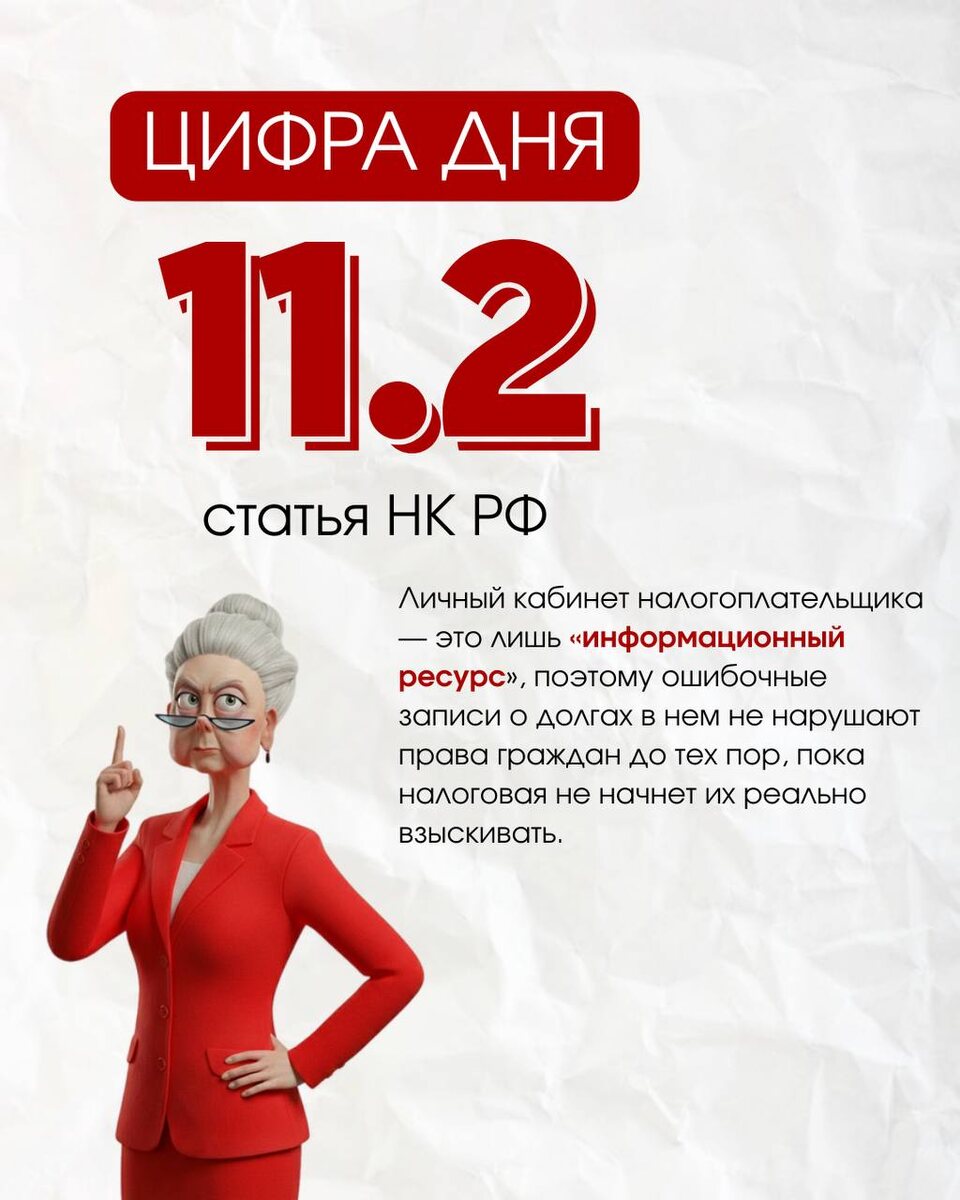 В личном кабинете налогоплательщика может быть указано что угодно — это не нарушает его права, указал КС (определение от 27.02.2025 № 315-О). Так как сведения о долгах перед бюджетом, которые отражаются в ЛК налогоплательщика, напрямую не влияют на размер налоговой обязанности, то обжаловать несуществующий долг в ЛК, бессмысленно. 1. Суть спора Гражданка Г. В. Тарасова обнаружила в своем личном кабинете на сайте ФНС информацию о задолженности по налогу на имущество и земельному налогу. Однако эти начисления были ошибочными — налоговая инспекция сама признала факт ошибки и подтвердила, что взыскивать эти деньги не будет. Проблема возникла тогда, когда Тарасова потребовала полностью удалить эту недостоверную информацию из системы. Суды трех инстанций ей отказали, хотя и согласились, что долг «фиктивный». После этого она обратилась в Конституционный Суд, посчитав, что нормы закона (ст. 11.2 НК РФ и ст. 218 КАС РФ) не позволяют гражданину эффективно защитить свои права и очистить свой ц