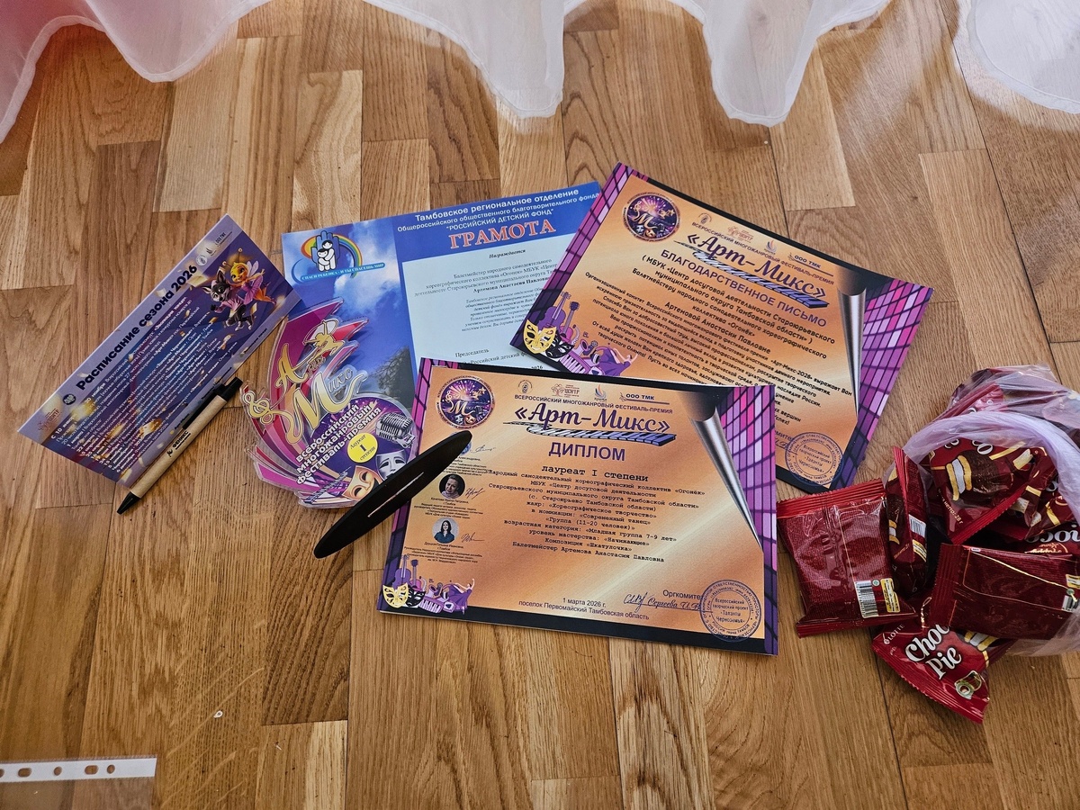 » 🎭 Юные артисты муниципального округа блестяще представили наш край на Всероссийском многожанровом фестивале-премии «Арт-Микс». Особого внимания заслуживает дебют младшего состава Народного самодеятельного хореографического коллектива «Огонёк» (рук. Анастасия Артемова). Несмотря на то, что ребята впервые вышли на сцену этого конкурса, их артистизм принес коллективу заслуженное 1 место! 🥇 Также высокий уровень мастерства подтвердил Образцовый художественный танцевальный коллектив «Вдохновение» (рук. Татьяна Юдакова). Каждая постановка вызвала живой отклик у зрителей и получила высокую оценку профессионального жюри. Поздравляем наших танцоров и их руководителей с блестящими результатами! Гордимся вами! ✨👏 #СтароюрьевскийМО #Тамбовскаяобласть #ЦДД_Староюрьево