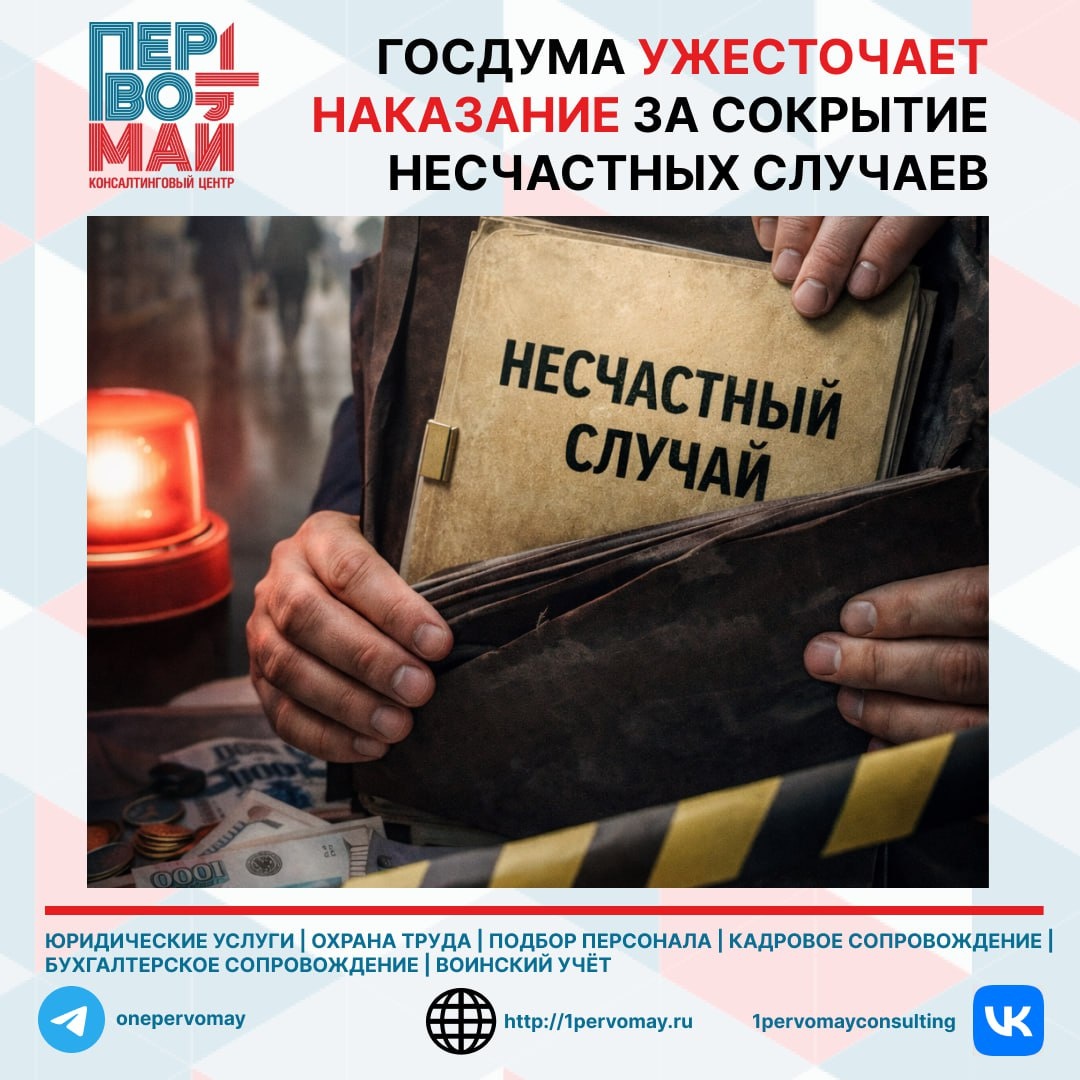 Депутаты в первом чтении поддержали законопроект № 914755-8 с поправками в КоАП по расследованию несчастных случаев на производстве. Вводится отдельное наказание за сокрытие, искажение или несвоевременное сообщение о несчастном случае в СФР. Новые штрафы (часть 4.1 статьи 5.27.1 КоАП): ⏺ Организации: 130 000–150 000 рублей ⏺ Должностные лица: 10 000–20 000 рублей ⏺ ИП: 20 000–30 000 рублей Плюс обновят статью 15.34 КоАП (сокрытие страхового случая): ⏺Юрлица: до 150 тысяч рублей ⏺Должностные лица: до 30 тысяч рублей Логика авторов: каждый, даже самый маленький ушиб, должен быть расследован, а недочёты исправлены, чтобы предотвратить более серьёзные случаи. "Договориться на берегу" с пострадавшим станет крайне невыгодно. 🔥 ХОРОШАЯ НОВОСТЬ ДЛЯ ИП Если ИП нанимает исполнителя по гражданскому договору и прописывает взносы на травматизм, бежать в СФР с заявлением о постановке на учёт больше не нужно. Госдума одобрила законопроект № 1075364-8: беззаявительный порядок. Постановка на