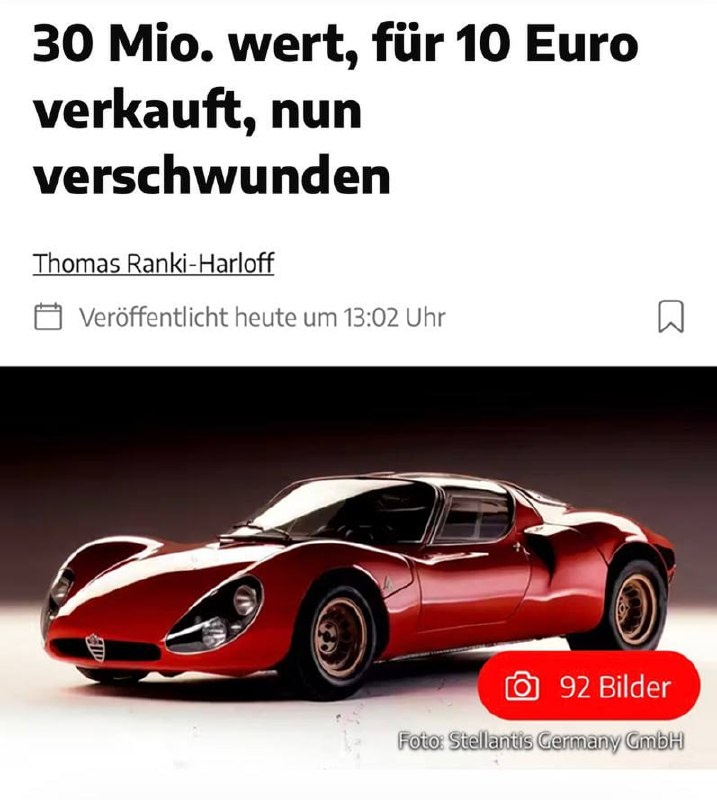 π€©Π Π΅Π΄ΡΠ°ΠΉΡΠΈΠΉ Alfa Romeo 33 Stradale Π²ΡΠΊΡΠΏΠΈΠ»ΠΈ Π·Π° 900 ΡΡΠ±Π»Π΅ΠΉ β ΡΠ°ΠΊΠΈΡ ΠΌΠ°ΡΠΈΠ½ Π² ΠΌΠΈΡΠ΅ Π²ΡΠ΅Π³ΠΎ 18