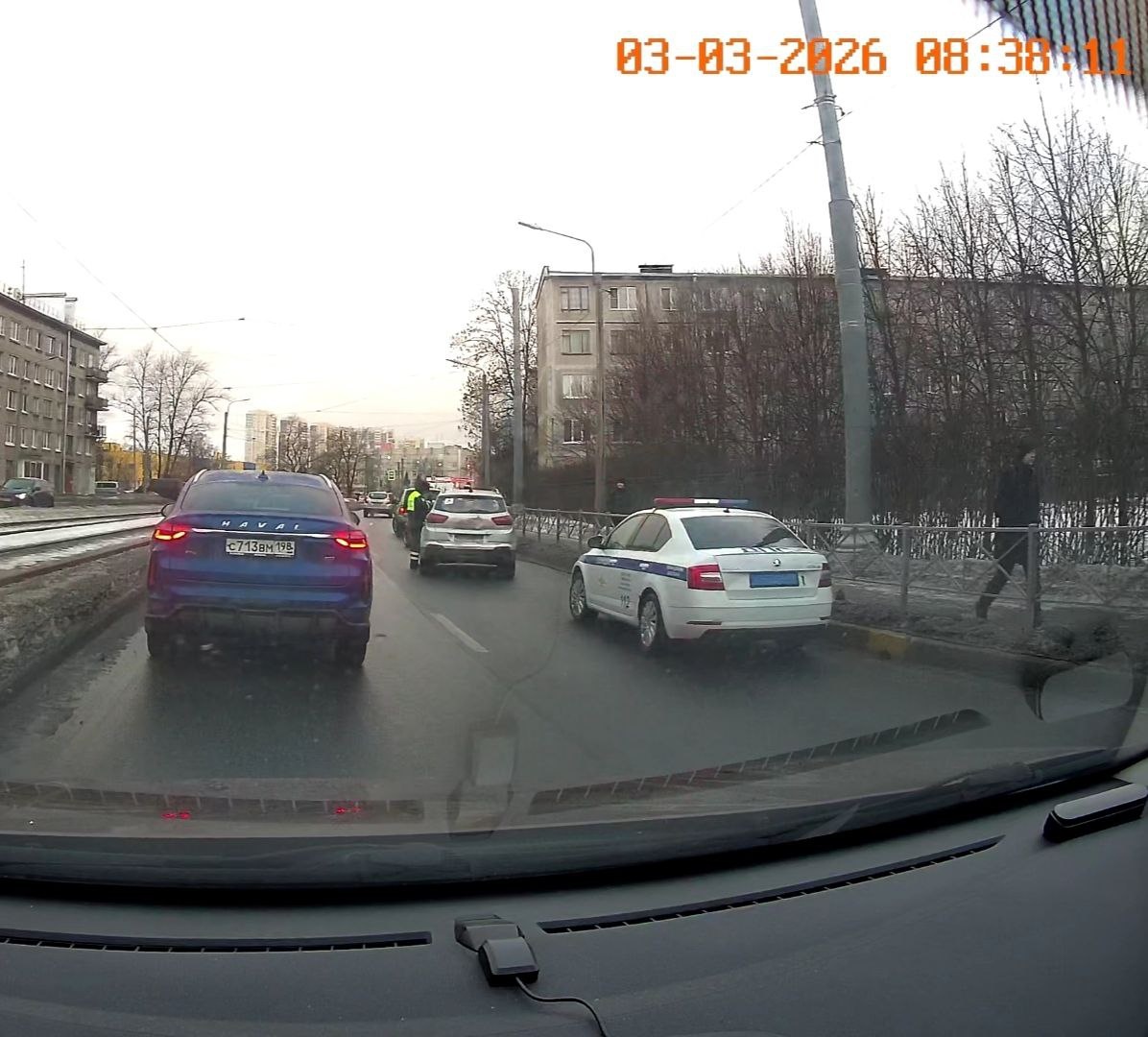 На улице Бабушкина, сразу после Рабфаковской, стоит наряд.