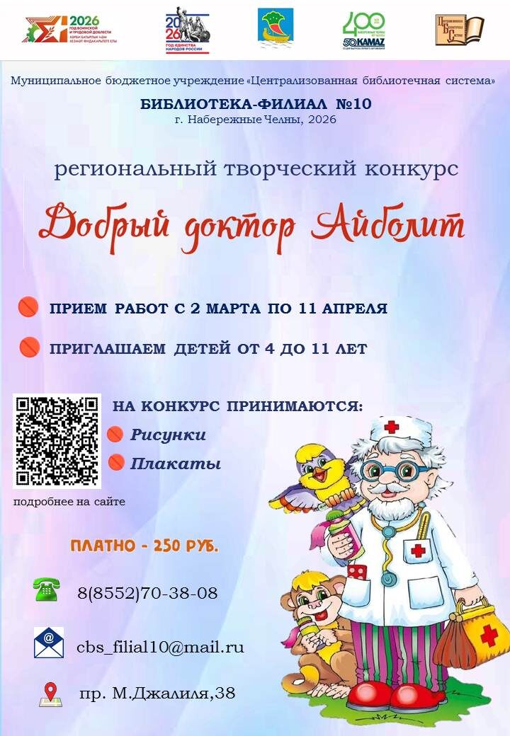 Положение конкурса https://библиотека-челны.рф/news/regionalnyj-tvorcheskij-konkurs-dobryj-doktor-ajbolit-0