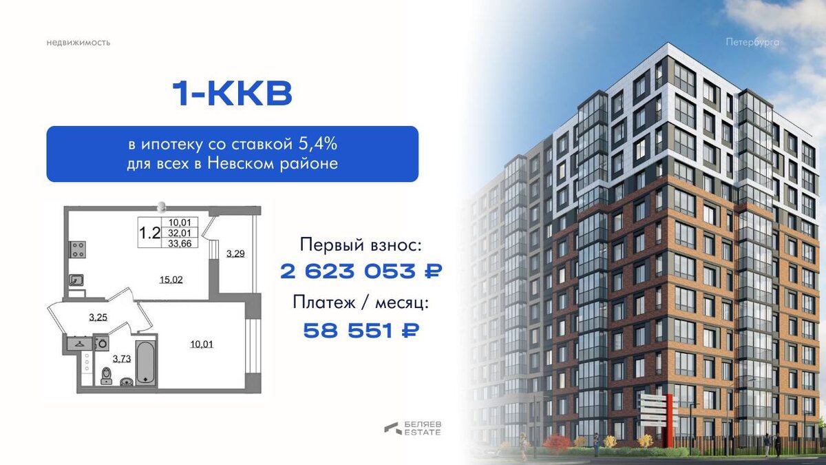Чистовая отделка под ключ, метро «Елизаровская» в пешей доступности, рядом с центром Петербурга. Расчёт: ▪️первый взнос — 2 623 053 ₽ ▪️ежемесячный платёж — 58 551 ₽ Для кого эта программа: 🎓 Студентов и тех, кто покупает первое жильё в Петербурге — старт в городе с комфортными условиями 🏡 Тех, кто продаёт вторичку — можете зафиксировать квартиру сейчас, и закрыть ипотеку после продажи квартиры 🚇 Тех, кому важна близость к центру и метро — Елизаровская в шаговой доступности, до центра 10 минут на автомобиле Ставка 5,4% для всех — без дополнительных условий. Это ниже семейной ипотеки и редкость на рынке. 📲 Оставьте заявку — покажем планировки и зафиксируем условия