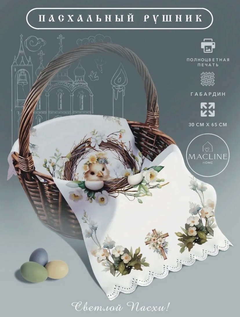 Пасхальный рушник для оформления праздничного стола и пасхальной корзины. Артикул 223832725, цена 254 руб.