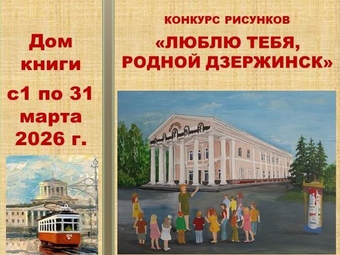 Центральная городская библиотека им. Н.К. Крупской (отдел историко-патриотической деятельности) приглашает художников и всех желающих принять участие в конкурсе рисунков «Люблю тебя, родной Дзержинск». Конкурс проводится в рамках федерального проекта «Патриотическое воспитание граждан Российской Федерации». На рисунке может быть любой эпизод из жизни города: памятник культуры, достопримечательность, историческое место, родной дом, школа или любимый двор — всё, что связано с Дзержинском. Этапы проведения: