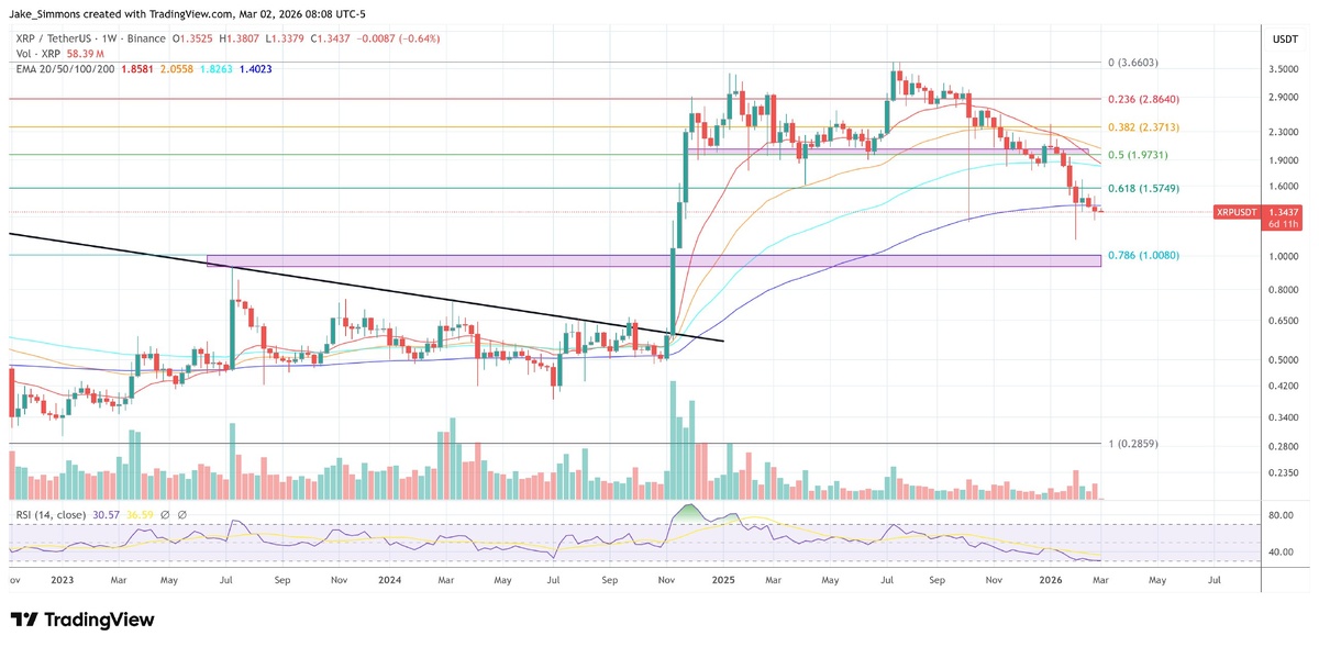 Геополитическая напряженность вернулась в центр внимания крипторынков после ударов США и Израиля по Ирану, однако, по мнению CryptoInsightUK, для XRP это не обязательно означает спад. Аналитик Уилл Тейлор предполагает, что XRP может выдержать потрясения лучше, чем Биткойн и Эфириум, поскольку уже скорректировался до уровней ликвидности, которые BTC и ETH еще не достигли. 📊 Ключевые моменты: - 📈 Прогнозируется чрезвычайная волатильность в ближайшем будущем. - 💰 XRP уже скорректировался к своим пулам ликвидности, в то время как Bitcoin (ликвидность около $60,000) и Ethereum (ликвидность около $1,720) еще ожидают этого. - 🆙 XRP может быть лучше позиционирован к росту, если давление со стороны продавцов ослабнет. - 🚀 XRP/ETH график начал новый восходящий тренд, предвещая потенциально взрывной рост XRP.