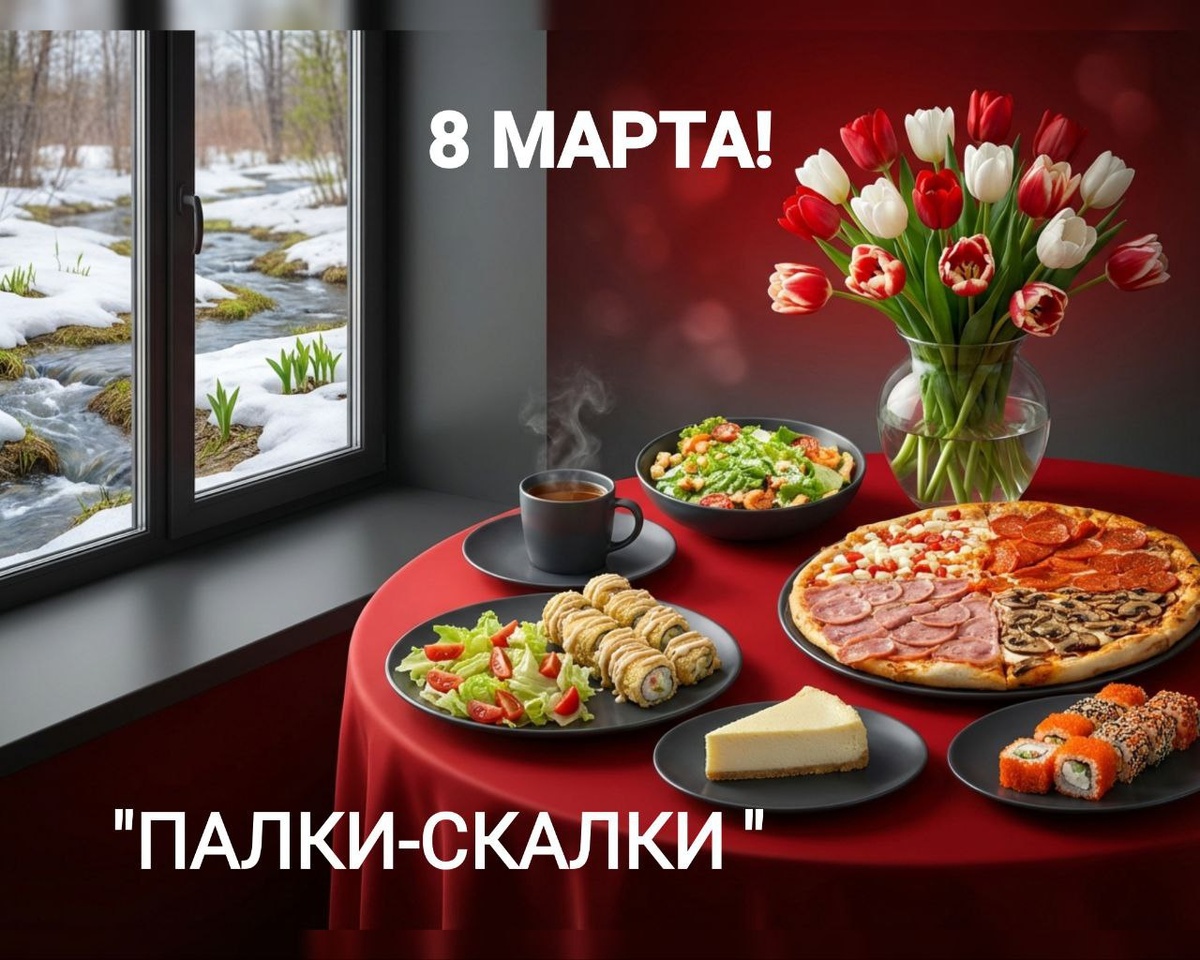 8 марта "ПАЛКИ-СКАЛКИ" объявляет выходной от плиты! Подарите своей женщине "вкусное гастрономическое удовольствие