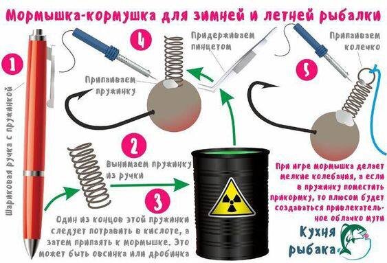 Хочешь, чтобы рыба сама находила твою приманку? Тогда сделай мормышку-кормушку. Работает и по первому льду, и по открытой воде! Смотри 👇 1️⃣ Берём обычную мормышку 2️⃣ Припаиваем паяльником небольшую пружинку (например, от авторучки) 3️⃣ Вынимаем пружину из ручки — и получаем готовый контейнер для прикормки 4️⃣ Прикрепляем к корме — то есть фиксируем пружинку на мормышке При нагреве (игре) мормышка создаёт мелкие колебания. Но фишка в другом — в пружинку забивается прикормка (мотыль, опарыш, тесто, панировка). Когда мормышка двигается в воде, прикормка вымывается и создаёт привлекательное облако мути. — Игру мормышки — Пахучее облако корма — И не может устоять! ✅ Работает зимой (подо льдом) ✅ Работает летом (в проводку или с кивком) ✅ Не нужно отдельно прикармливать лунку ✅ Привлекает даже пассивную рыбу На эту снасть отлично идёт плотва, лещ, густера, окунь и даже карась! Ставь 🔥, если любишь экспериментировать с оснастками, и сохраняй идею! 👇