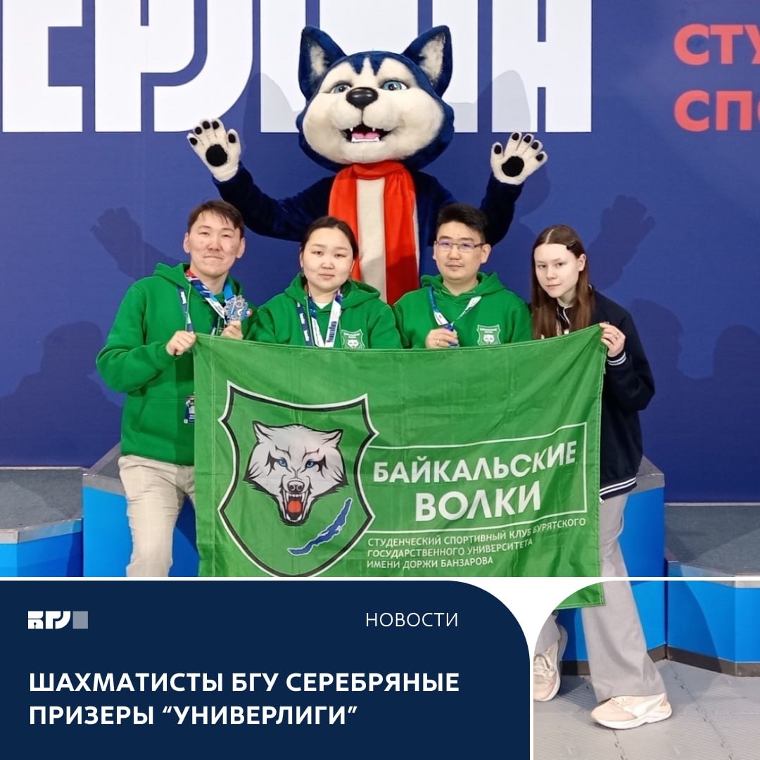 завоевали серебро по шахматам! ♟Состав команды призеров: Ангаров Дмитрий, Шагдуров Денис, Шагдурова Арюна. Тренер-сопровождающий: Баинов Борис Сономович. Напомним, что в "УниверЛиге" принимают участие более 3000 участников со всех регионов страны. Делегация БГУ представлена в соревнованиях по баскетболу 3х3, шахматам и в образовательной программе для спортивных и медиа менеджеров. Поздравляем ребят и гордимся вашими успехами!