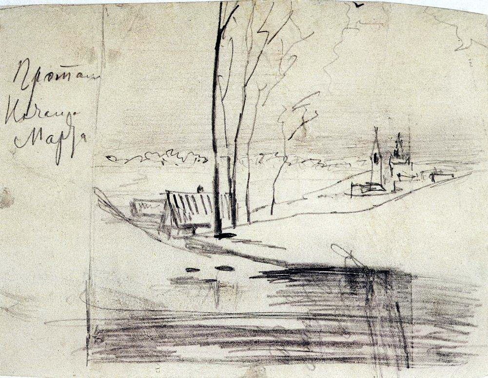 🌦 На сумрачной чужбине, в чаще, где ужас очертанья стер, среди прогалины — горящий, как сердце жаркое, костер. Вокруг синеющие тени, и сквозь летающую сеть теней и рдяных отражений склоненных лиц не разглядеть. Но, отгоняя сумрак жадный, вот песня вспыхнула в тиши, гори, гори, костер отрадный, шинели наши осуши. И снова всколыхнулись плечи, и снова полуночный взмах, кипят воинственные речи и слезы светятся в глазах. Зверье, блуждающее в чащах, лесные духи и ветра бегут от этих глаз горящих и от поющего костра. Зато с каким благоговеньем, с какою верой в трудный путь, утешен пламенем и пеньем, подходит странник отдохнуть. #ВладимирНабоков 🖼 #АлексейСаврасов. «Проталина. Начало марта». 1880-е. & #РусскаяПоэзия & #Живопись & #РусскаяЖивопись & #УтроМарт .......Никакого селения кругом не видно....