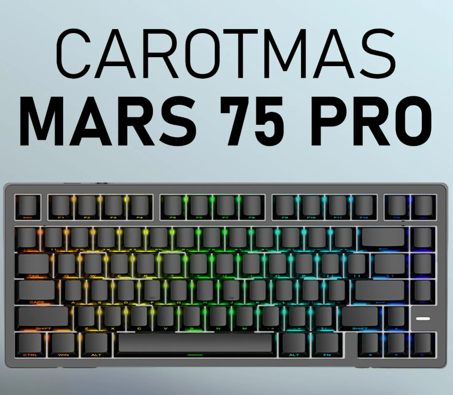 Carotmas выпустила Mars75 Pro — компактную клавиатуру с магнитными переключателями. Модель использует эффект Холла и ориентирована на игры, где важна скорость срабатывания клавиш. Что с характеристиками У Mars75 Pro форм-фактор 75% — это 84 клавиши, раскладка ANSI. Корпус алюминиевый, весит около 600 граммов. Подключение только проводное, Type-C, частота опроса заявлена на 8000 Гц. Переключатели — магнитные, с возможностью регулировки точки срабатывания. Есть поддержка Hot-Swap, то есть менять свитчи можно без пайки. Клавиши — ABS-пластик с прозрачными символами, подсветка RGB. Что с функциями Главная особенность — наличие Rapid Trigger. Это функция, которая позволяет нажимать клавишу повторно, не отпуская её до конца. В шутерах вроде Valorant или CS2 это даёт прирост в скорости стрейфа и других движений. Частота опроса 8000 Гц — стандарт для современных магнитных клавиатур. Формально это в 8 раз быстрее обычных офисных моделей, хотя разница заметна не столько в цифрах, сколько в отзы