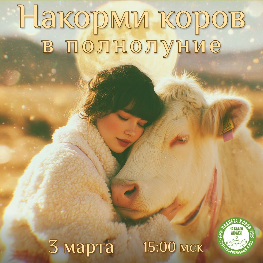 — особенный день. 🐮 Мы встречаем его в теплой компании счастливых коровушек, в день, который называют «Золотым Полнолунием», завершающий цикл затмений. Это время, когда внутренняя тишина особенно важна, и каждый наш добрый поступок обретает особую силу. 🙌🏻 Мы часто гонимся за материальными благами, забывая о том, что истинное богатство — это благочестие. Это та незримая валюта, которая наполняет нашу жизнь смыслом, дарит здоровье и спокойствие тем, кого мы любим. Забота о близких, о тех кто в ней нуждается — это самая прямая дорога к накоплению этого бесценного сокровища. 🐮 Корова — это символ бескорыстной материнской любви и безусловной отдачи. Заботясь о коровках, мы открываем в своем сердце источник любви, который, возвращаясь, делает нашу жизнь ярче, а сердца — счастливее. Считается, что такое доброе дело помогает не только нам, но и будущему поколению и нашим предкам. Приглашаем вас присоединиться к онлайн-кормлению 🗓 3 марта ⏰ в 15:00 мск. Напишите имена своих близких в