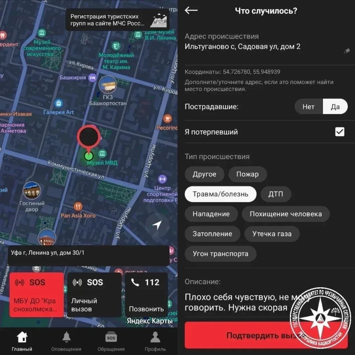 «112-Экстренная помощь» позволяет связаться с оператором в текстовом чате и автоматически передает координаты и медицинские данные В Госкомитете Башкирии по чрезвычайным ситуациям рассказали о возможностях мобильного приложения «112-Экстренная помощь», которое создано специально для ситуаций, когда позвать на помощь голосом невозможно — например, из-за физического состояния или в присутствии агрессора. Это полностью безголосовой способ связи с оператором, позволяющий описать ситуацию в текстовом чате с автоматической передачей точных координат местонахождения пользователя, при этом к сообщению можно прикрепить фото или видео для подтверждения слов. Диспетчер также может получить из приложения важные медицинские данные, включая группу крови, информацию об аллергических реакциях и хронических заболеваниях. В ведомстве привели конкретный пример эффективной работы сервиса: несколько дней назад в Систему-112 поступило обращение от молодого человека, который внезапно почувствовал сильное нед