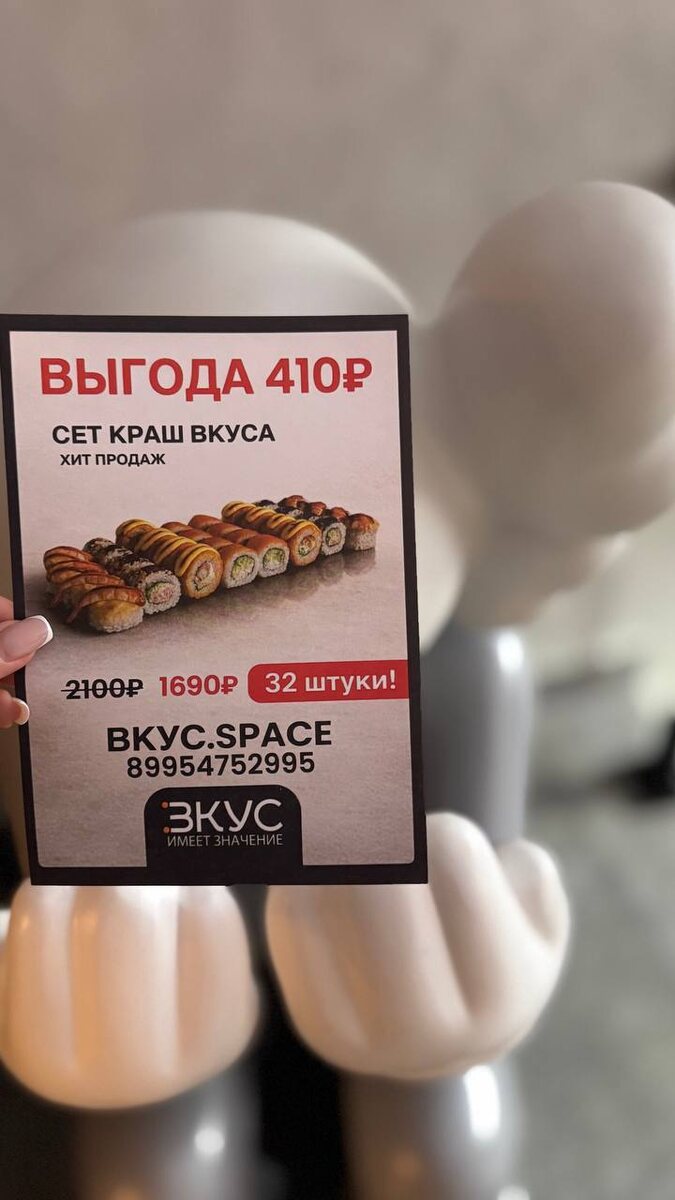 ? Информация для вас! При заказе через сайт Вкус.space укажите промокод Freedom и получите аппетитный ролл (8 шт.) в подарок при любом заказе от 1000₽. Внутри: лосось терияки, огурчик, творожный сыр, а сверху полит соусом унаги. 😋 Предложение действует весь март.