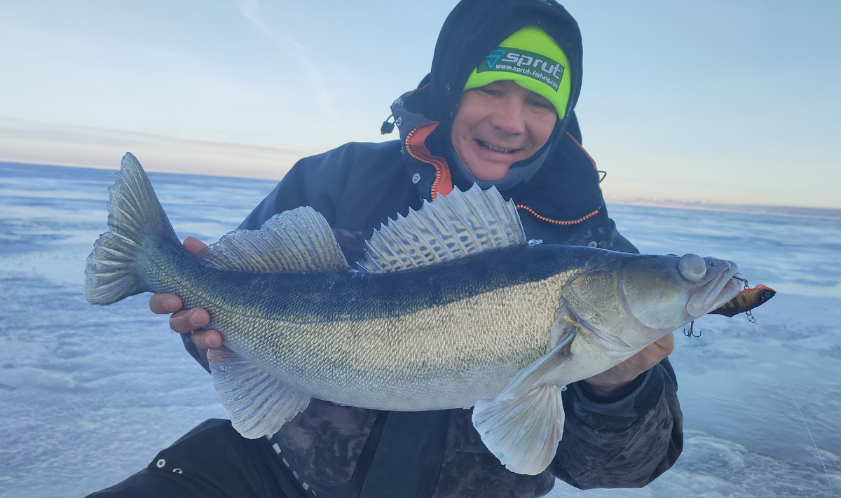 Друзья, эта рыбалка запомнится мне надолго, одна из лучших охот на судака этого сезона. Буквально недавно очередная вылазка на Куйбышевское водохранилище. Предварительно с вечера изучил карты глубин и свои точки с корягами, сопоставил и решил ехать туда, где, по моему мнению было перспективней всего. Добрались, забурил лунок 17 сразу и хождения по отверстиям началось). Результат был таков, что рыбка стоит на дне и не подымается к приманке. Ладно, думаю, надо ещё бурить, да бы найти активного колючего. Делаю ещё лунок 20 и погнал ходить, правда, лунки подмерзают, потом решил делать поменьше в количестве.) Ближе к обеду натыкаюсь на жирный подъём и долгое ожидание, пока подойдет хотя бы понюхать. Стоял под приманкой минут 15, ну и тут заветная полоса пошла в сторону приманки, правда, неохотно, но он клюнул, и клыкастый под 4 кила на борту лайнера поймал сожрал.) Фото, видео, все дела, и продолжаем, обуриваем пятак с насыщенным и плотным коряжником. И