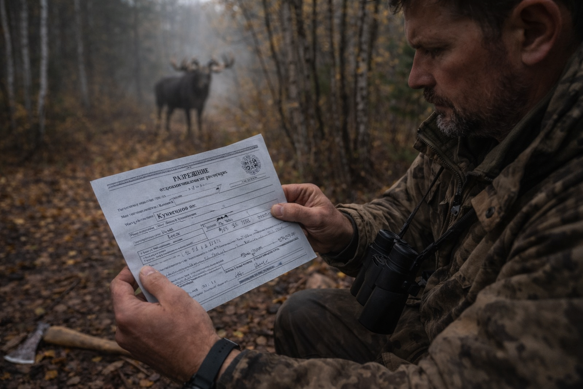Вы когда-нибудь держали в руках документ, за который заплатили, который ждали несколько месяцев, под который готовились весь год — и вдруг замечали в нём одну лишнюю или пропущенную букву? И в этот момент понимали, что весь сезон может зависеть от неё. Разрешение на лося я получил в начале сентября. Гон только начинался, бык уже отзывался на манок по утрам, лес стоял влажный, тяжёлый, с запахом прелой листвы. Я готовился к этому сезону с весны — проверял тропы, отмечал кормовые места, изучал переходы через ручьи. Документы забирал в районе второпях. Очередь, суета, подписи. Я бегло проверил номер участка, сроки, вид зверя. Всё сходилось. Заплатил госпошлину, расписался и уехал. Ошибка сидела тихо — в одной букве моей фамилии. Я заметил её уже в лесу. В тот самый день, когда услышал первый уверенный ответ быка на манок. Утро было холодным, туман лежал по низинам. Я стоял у кромки старой вырубки, когда вдалеке протянуло низкое, глухое «у-у-о». Ответ взрослого самца. Сердце пошло быстрее