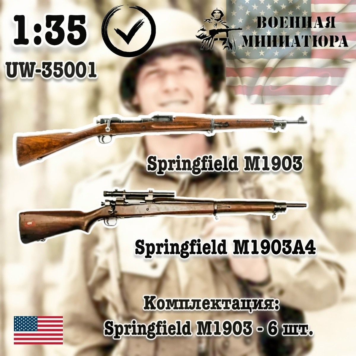 Ставропольская "Военная миниатюра" выпустила на 3D-принтере наборы американских винтовок Springfield M1903 и M1 Garand в масштабе 1/35:
