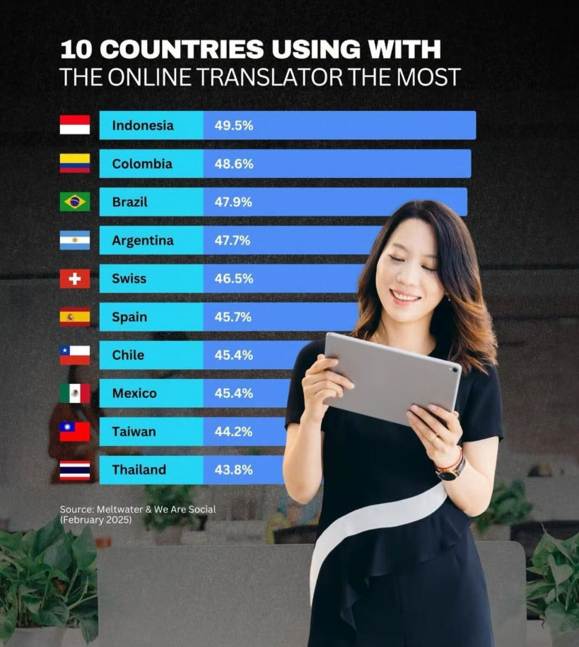 В современном мире, где границы стираются благодаря интернету, инструменты онлайн-перевода играют ключевую роль в общении. Невероятно, но факт: Индонезия возглавляет список стран, активно использующих эти чудо-сервисы! Почти половина (49,5%) индонезийских интернет-пользователей регулярно прибегает к помощи онлайн-переводчиков. Это отражает огромную цифровизацию страны и ее стремление к международному контенту, бизнесу и образованию. Следом за Индонезией идут страны Латинской Америки. Колумбия занимает почетное второе место с 48,6% пользователей, а Бразилия — третье с 47,9%. Это говорит о том, что жители региона активно используют переводчики для преодоления языковых барьеров, будь то доступ к англоязычной информации, мировым новостям или общение с людьми из других стран. Ряд других стран также демонстрирует высокую активность в использовании онлайн-переводчиков. В топ-10 входят Аргентина (47,7%), Швейцария (46,5%), Испания (45,7%). В замыкающей десятку группе оказались Чили, Мексика, Т