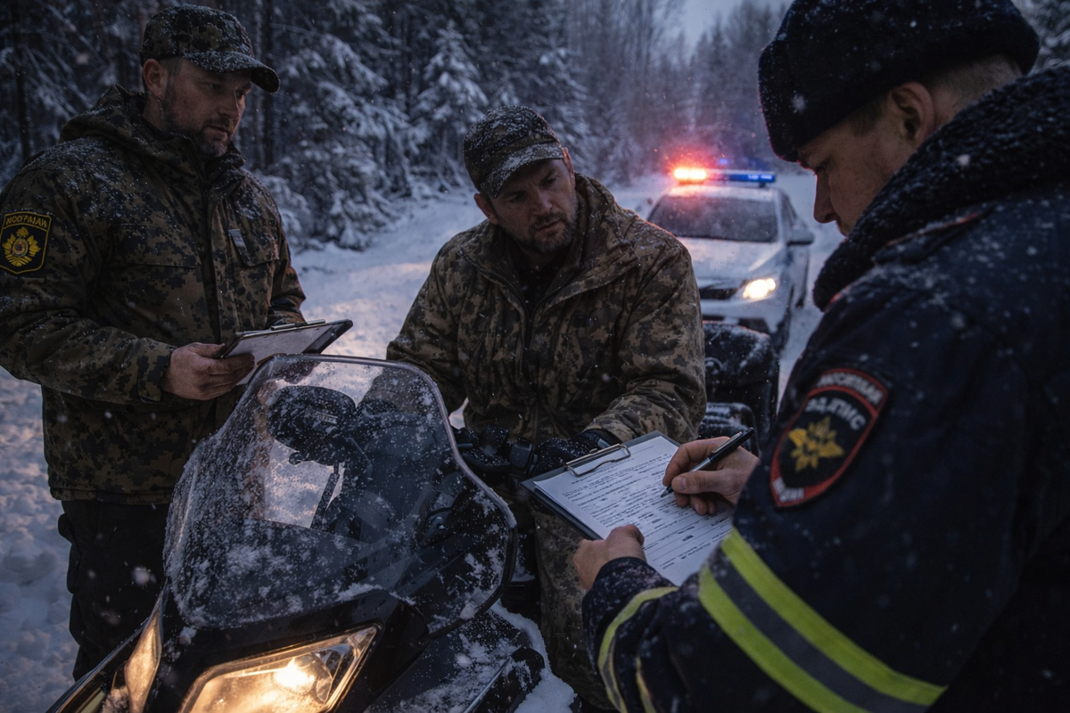 Вы когда-нибудь чувствовали облегчение от того, что сезон почти позади, зверь не добыт, нарушений нет, документы в порядке — и вдруг выясняли, что проблема ждёт вас не в лесу, а на дороге домой? Не из-за выстрела. Из-за даты. Февраль в тот год стоял крепкий. Мороз держал наст, зимник был плотный, техника шла уверенно. Я возвращался с участка ближе к вечеру — без добычи, без лишних историй. День прошёл спокойно: проверил следы, снял пару старых капканов, осмотрел границу угодий. Всё чисто. Снегоход работал ровно, двигатель урчал привычно. До трассы оставалось километров пятнадцать, когда впереди замигали огни. На зимнике стоял патруль — инспектор охотнадзора и сотрудник ГИБДД. Такое бывает: совместные рейды по технике, особенно в разгар сезона. Я остановился спокойно. Оружие в чехле, разряжено. Разрешение при себе. Паспорт, охотбилет — всё в папке. — Добрый вечер. Документы на технику, — сказал сотрудник ГИБДД. Я передал свидетельство о регистрации, водительское удостоверение, страховк