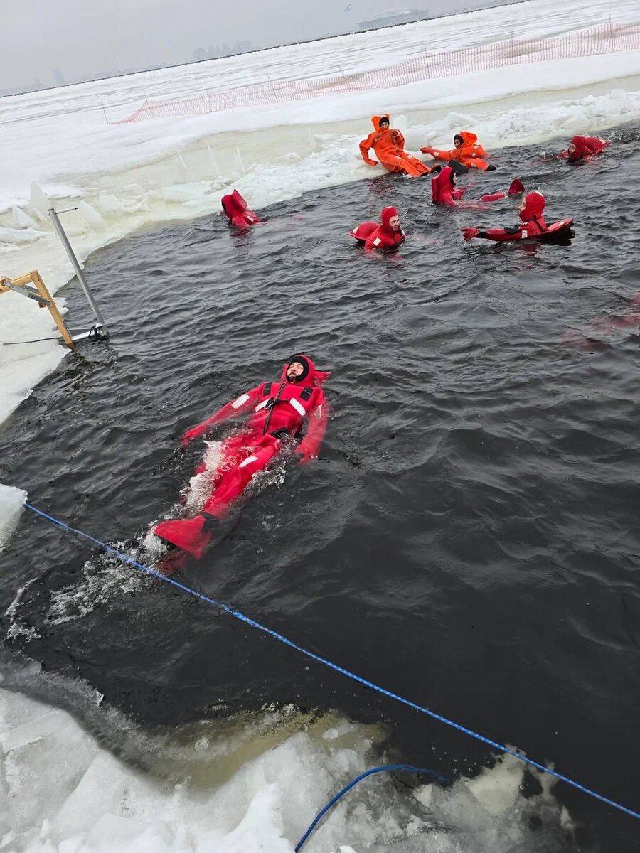 Спасибо 🫶 Спустя почти месяц, в первый день весны я искупался в ледяной воде в спасательном костюме. Самое яркое впечатление - прыжок спиной в воду. Обычно мы так не ныряем, но в костюме можно и нужно только так. Ощущение падения в неизвестность и ледяная вода окатывающая лицо — удивительное сочетание, усиливающее контакт с физической реальностью.