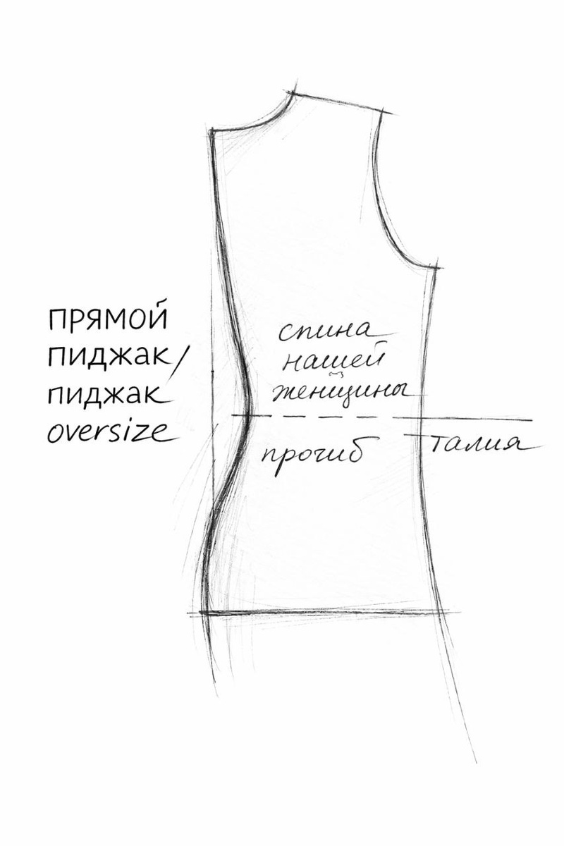: «У меня нестандартная фигура. У меня прогиб в пояснице. Наверное, поэтому жакеты на мне плохо сидят». И почти сразу следом: «Я меряю жакет, а сзади ещё половина меня влезет». Или: «Сзади какой-то пузырь». И каждый раз мне хочется сказать одно. Вы - не “нестандарт”. Это нормальная женская анатомия нашей российской женщины. У большинства наших женщин есть талия. Есть естественный изгиб позвоночника. Есть бёдра. Есть линия поясницы. Это красиво. Это женственно. И это не ошибка. Большинство жакетов сконструированы под более прямой силуэт. Под условно “ровную спину”. Под "стандарт". Какой-то там. И тогда в области поясницы появляется лишняя ткань. Возникает "пузырь"/ "мешок". Силуэт теряет чёткость. И женщина делает вывод: «Наверное, со мной что-то не так». Нет. С вами всё в порядке. Вы не одна такая. Проблема — в лекалах.