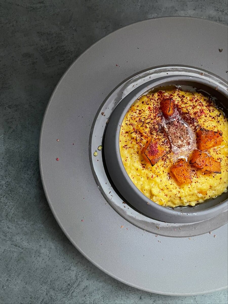 Я не очень понимала сочетание тыквы и пшенной каши, обе мягкие, тыква еще овощ такой, знаете, на любителя. Но когда я открыла для себя правильно приготовленную тыкву и сдобрила все это шоколадом, ооо, я вам скажу, совсем другая история! Как обычно, важны нюансы приготовления. Кстати, присмотритесь в магазине к сорту тыквы Баттернат, он насыщенный по вкусу, плотный, не волокнистый. В магазине ищите тыкву, похожую на орешек-это она. Приступим-с Ингредиенты на 4 порции: Начинаем с пшена. Пшено промываем под холодной водой, сливаем через дуршлаг. Теперь фишка - мы варим кашу по методу ризотто, т е не сразу наливаем литр молока и оставляем все это бурлить. Наливаем жидкость понемногу, по чуть-чуть, давая ей впитаться и затем понемногу подливаем снова. Моим способом каша получится плотной, тягучей, разница с обычным способом варки огромна. В маленькую кастрюльку наливаем 100 мл воды и 100 мл молока, подогреваем на огне 6 из 9, и как жидкость стала горячей, кладем пшено, сразу солим 1/4 ч л и