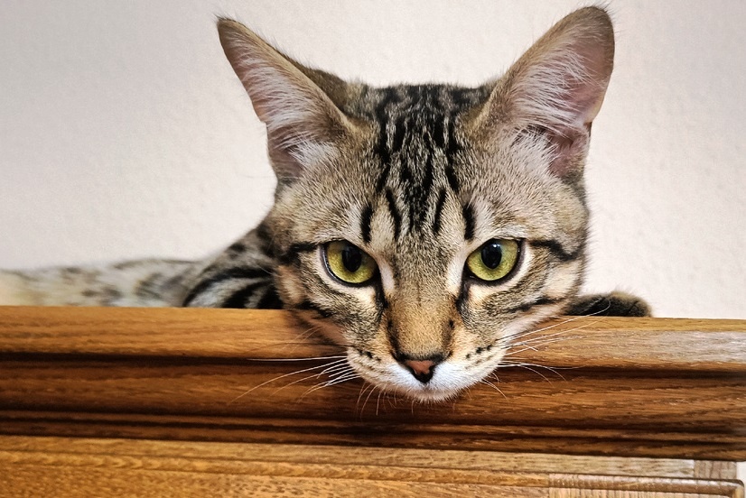 Знаете, как он туда попадает? Между шкафами стоит тумба, уставленная хрупкими сувенирами. Маркиз взлетает вверх как катапульта: один грациозный прыжок, мгновение в воздухе — и он уже на «втором этаже». При этом, соблюдая свой «лагом», он ни один сувенир даже не пошевелит. Ювелирная точность!