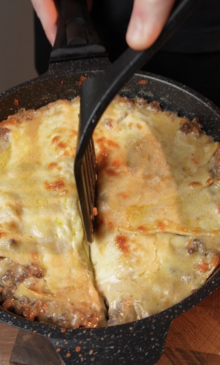 Но вернёмся к лазанье. Потому что текст — это хорошо, но лазанью нужно видеть. В статье я могу написать «тушите до готовности». Но как понять эту готовность? Как увидеть консистенцию соуса, чтобы листы не превратились в кашу? Как понять, сколько воды добавить, чтобы всё протомилось, а не пригорело? Текст не передаёт запах. Текст не показывает, как плавится сыр. Поэтому я снял отдельный ролик с рецептом этой сковородной лазаньи.